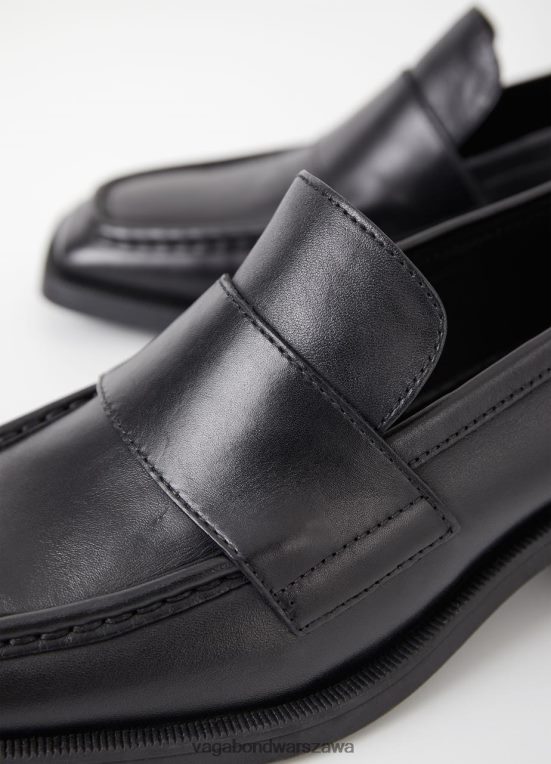 nowoczesne Mokasyny Blanca Na Obcasie Są Wykonane Z Czarnej Skóry, Mają Kwadratowe Noski I Ozdobny Skórzany Pasek Na Przyszwie. Stylizację Uzupełniają 47mm Rozkloszowane Obcasy.