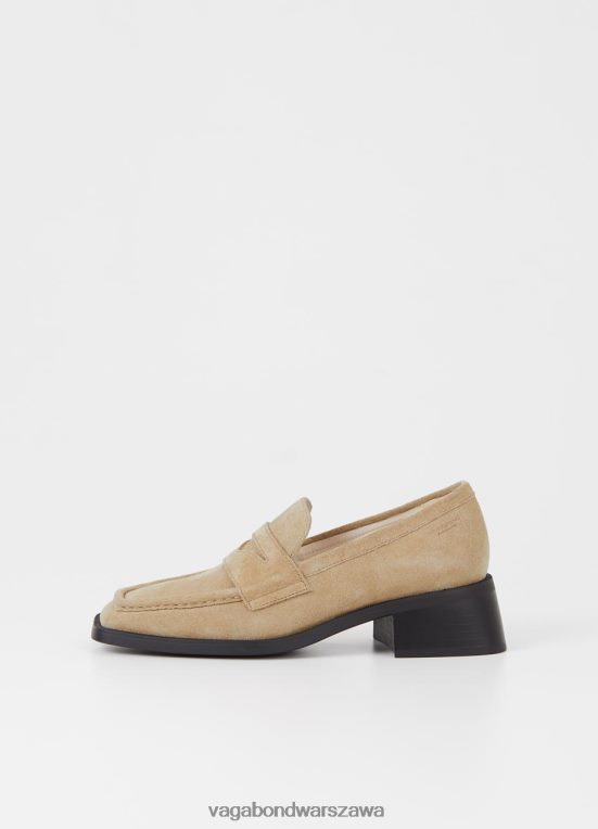 nowoczesne Mokasyny Blanca Na Obcasie Mają Ponadczasowy, Wyrafinowany Design. Model Jest Wykonany Z Beżowego Zamszu Z Kwadratowymi Noskami I Ozdobnym Paskiem W Poprzek Przyszwy. Stylizację Uzupełniają Rozkloszowane Szpilki 47 Mm.
