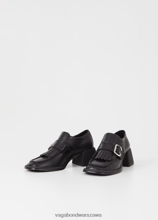 ansie To Mokasyny Z Frędzlami Na Obcasie O Nowoczesnym Wyglądzie. Styl Jest Wykonany Z Czarnej Skóry Z Zaokrąglonym Noskiem, Ozdobnymi Frędzlami I Srebrną Sprzączką Na Cholewce. Rozkloszowane Obcasy Klockowe Mają 59 Mm.