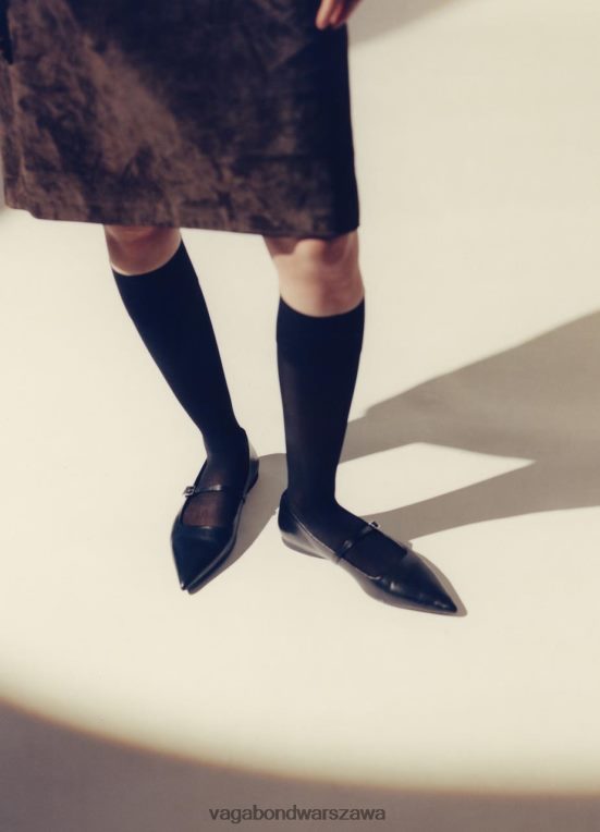 hermine To Odważne Płaskie Buty Inspirowane Stylem Mary Jane O Wyrafinowanym Wyglądzie. Styl Jest Wykonany Z Czarnej Skóry O Smukłym Kształcie Palców I Delikatnym Pasku Z Zapięciem Na Sprzączkę. Niskie Obcasy Mierzą 10 Mm.